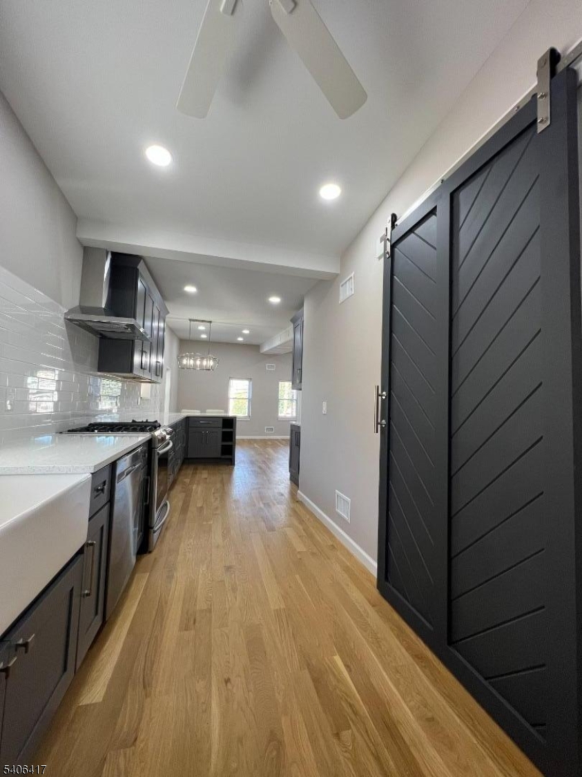 Experience luxury living in this beautifully updated 3-bedroom, 2-bathroom apartment on the 2nd floor.Upon entering, the stunning hardwood floors flow seamlessly through the open-concept living, dining, & kitchen areas, providing a warm and welcoming atmosphere. The living room features a grand fireplace, creating an inviting space for relaxation & entertainment. While the custom made barn door flows seamlessly into the master bedroom & an en-suite bathroom with modern fixtures & finishes. Two additional bedrooms are spacious & well-lit, perfect for family or guests. The second bathroom contains a stylish double vanity. A huge plus is the in-unit laundry quarters, saving you trips to the laundromat. 500 ft from the local Carlstadt K-8 public school & close to the NJ Transit bus line. Enjoy easy access to parks, shopping, & dining options. Convenient commute to NYC & access to Rt 3,17,& 21. Exterior painted Sherwin William "Iron Ore."