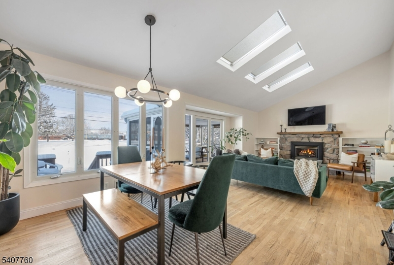 Welcome home to this truly lovely Colonial, streaming with light thoughout and perfectly situated on a LEVEL CORNER PROPERTY in the very desirable Clover Hill neighborhood in Flanders Mt. Olive. With three full levels of living space, this home's floorplan is perfectly set up for living and entertaining as well as for working and vacationing from home! Step inside from a front deck porch to the foyer which leads to a large family room with big sunny windows, a powder room and convenient garage entry. You will be "WOWED" by the main level, where the OPEN CONCEPT living room and dining room feature a valuted ceiling with skylites, cozy stone fireplace flanked by built in shelves and leads to a fabulous three season sunroom. The eat in kitchen has a double oven, natural gas cooking, breakfast bar space and a door leading to the backyard deck. Upstairs, you will find 4 nice sized bedrooms and TWO RENOVATED BATHS, with the primary bedroom having its own ensuite bath. Ample basement and crawl space for storage and laundry area. Check out the floors throughout...all hardwood and maintenance free flooring so you will have NO CARPET TO RIP OUT! Outdoor property here is fully fenced with a dual deck, above ground pool and plenty of yard space for backyard fun. PUBLIC WATER & SEWER ARE HERE so you never have to worry about septic systems or wells. This is an extremely well maintained home and is in move in condition, and offers a great opportunity to own here.