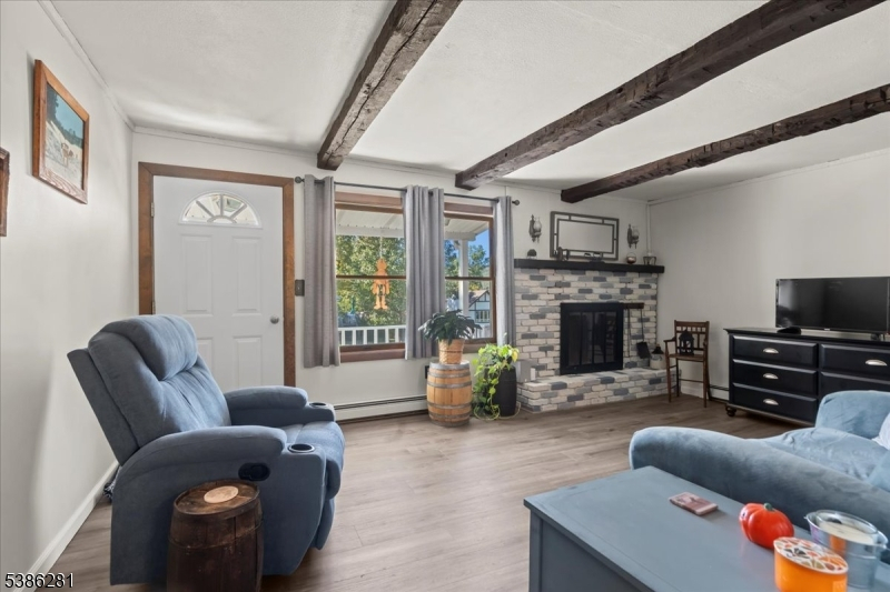 Welcome to this charming ranch-style home offering a warm and inviting atmosphere both inside and out. This residence features 3 comfortable bedrooms and 1 full bath, along with a separate dining area perfect for meals or gatherings. The kitchen is complete with classic wooden cabinets, while a mix of vinyl and tile flooring flows throughout the home for easy maintenance. The cozy living room stands out with its wood-burning fireplace, exposed beams, and plenty of natural light. The home also includes an unfinished basement, providing great potential for additional living space or storage.Step outside to a spacious backyard that backs to the woods, offering both privacy and beautiful views. It's an ideal setting for BBQ parties, outdoor relaxation, or entertaining. An oversized 2-car detached garage adds even more convenience and storage options.Located just minutes from Wawayanda State Park, the Appalachian Trail, downtown Warwick, local wineries, a drive-in theater, and more, this home combines comfort with easy access to the best of the area!