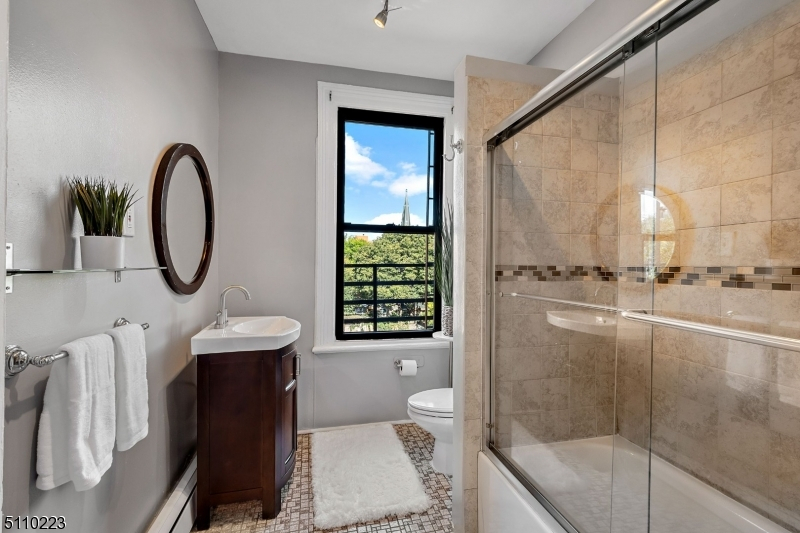 Updated and cozy 1-bedroom apartment located in a charming historic brownstone, with a versatile bonus room ideal for a spacious walk-in closet or home office. This bright and sunny third-floor unit features hardwood floors throughout, an updated kitchen with stainless steel appliances, and a new washer and dryer. The refreshed bathroom includes a new vanity with an oak mirror. Additional highlights include a new boiler and newer water heater. Conveniently situated near Berry Lane and Liberty State Parks, with easy access to transportation including the Garfield & MLK Light Rail and multiple bus lines. Pet-friendly.