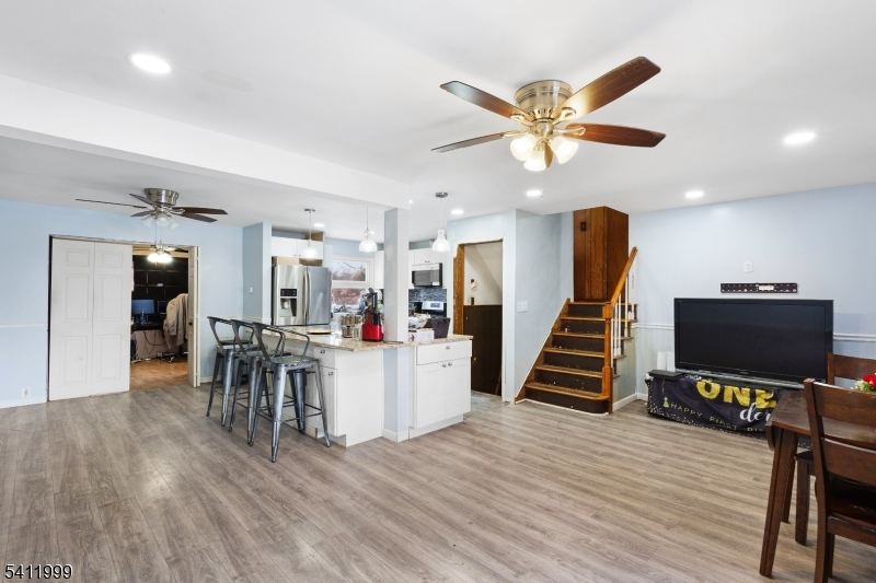 Allow your imagination to run wild with this Fabulous diamond in the rough. There is room for Everyone and so much possibility as you experience 4 Levels of spacious living + a partially finished basement. You'll enjoy the airy, open and seamless blending of the Kitchen, Living and Dining areas. The adjacent Office/Den space leading to bedroom #4 provides so many options - perhaps a 1st Floor Primary ensuite? The sky's the limit - All on Level 1. On Level 2, enjoy two nicely sized bedrooms, a full bath with tub and a hall way linen closet. On Level 3 the large Primary bedroom is a sanctuary unto itself with double closets one of which leads to a large attic/storage space. All Bedrooms and the Office/Den have wood floors. Lower Level 4 provides a very ample laundry room, a side exit to the yard, the 2nd full bath with standing shower and a mud area leading to the garage. The basement houses the utility space along with a partially finished room for whatever suites you. A private large back yard provides opportunity for fun and respite. This Home is well located and in close proximity to all major highways, Universities, shopping, restaurants, Newark Int'l Airport, Newark Penn Station, schools, theatres, cultural centers and places of worship. Home being sold AS IS.