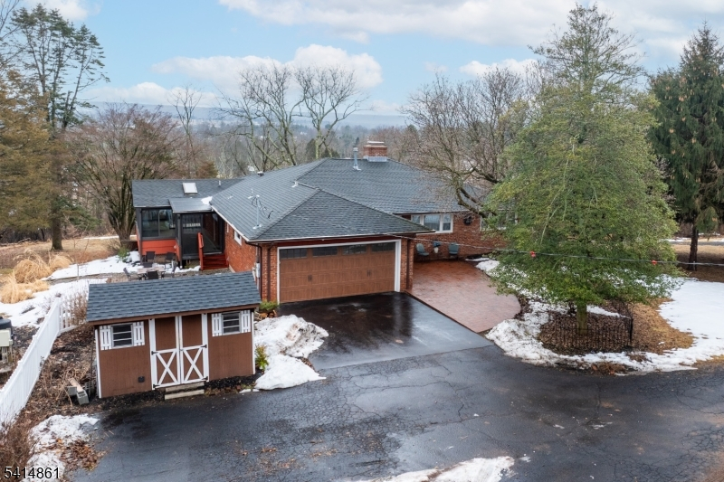 Wake up to breathtaking Sourland Mountain views in this impeccably maintained home offering two levels of easy one-floor living. Nearly every room captures the stunning natural backdrop. The main level features 3 of the 4 bedrooms, 1.5 baths, a sun-filled living room, dining room, eat-in kitchen & beautiful sunroom with vaulted ceiling and skylights. Thoughtful details throughout include hardwood floors, recessed lighting, wainscoting, trendy light fixtures, an adorable coffee/beverage bar & abundant closet space. Motorized dining room blinds open to an expansive deck with an electronic awning perfect for relaxing or entertaining while enjoying the views. The finished walkout lower level expands the living space with a family room, bedroom, kitchenette, dining room, full bath & laundry ideal for an in-law suite, guests or work-from-home. Discover a wood-burning fireplace on each level & comfy heated floors in both full baths. Outside, enjoy a private backyard retreat with a saltwater in-ground pool featuring a new motor (2024), Polaris & solar cover. Additional highlights include 2 sheds, 2-car garage and ample driveway parking. Major updates include septic (2021), water heater (2021), roof (2012), new HVAC (2024) & a gas generator hook-up. Conveniently located near the Sourland Mountains, Neshanic Valley Golf Course, Duke Island Park & the scenic Raritan River offering kayaking/fishing plus easy access to Flemington, Bridgewater, Princeton, trains & major highways. FABULOUS!