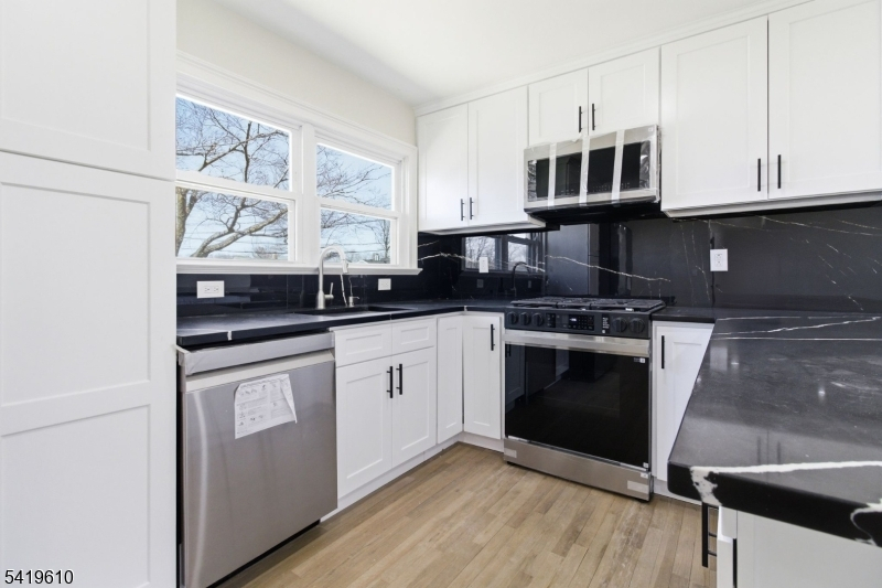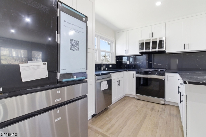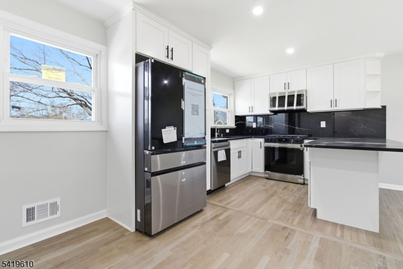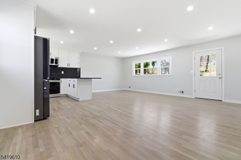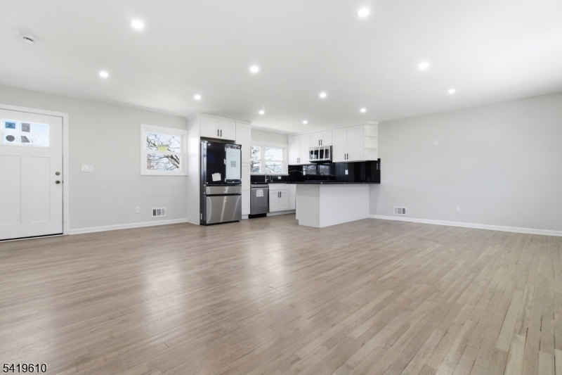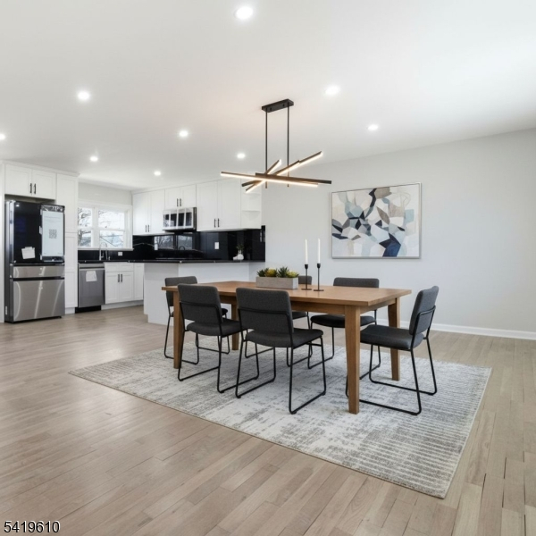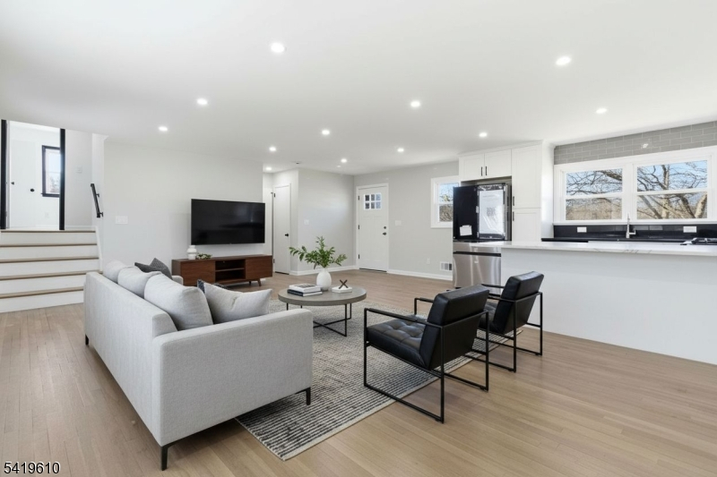 A rare find! A reimagined single-family residence where modern elegance meets everyday comfort. Perched on a gentle rise, this striking home boasts exceptional curb appeal with its refined exterior, manicured landscaping, and private driveway leading to an attached garage. Step inside to discover a sun-drenched, open-concept layout designed for both effortless living and sophisticated entertaining. Gleaming hardwood floors flow throughout, complemented by recessed lighting and a seamless blend of contemporary finishes. The expansive living and dining areas open gracefully into a designer kitchen, featuring crisp white cabinetry, sleek black countertops, premium stainless steel appliances, and a statement backsplash. Thoughtfully updated throughout, this home offers generously sized bedrooms and a versatile layout to suit a variety of lifestyles. Large windows invite abundant natural light, creating a warm and inviting ambiance in every room. A true gem just ready to impress the most discerning buyer. Grab this deal now!