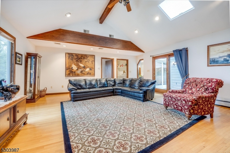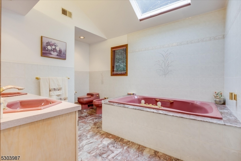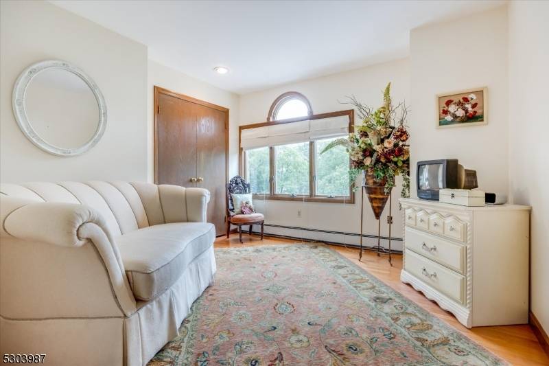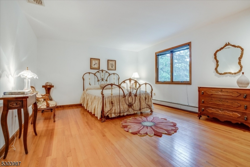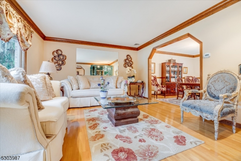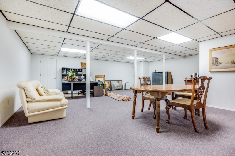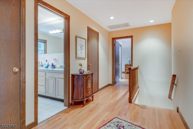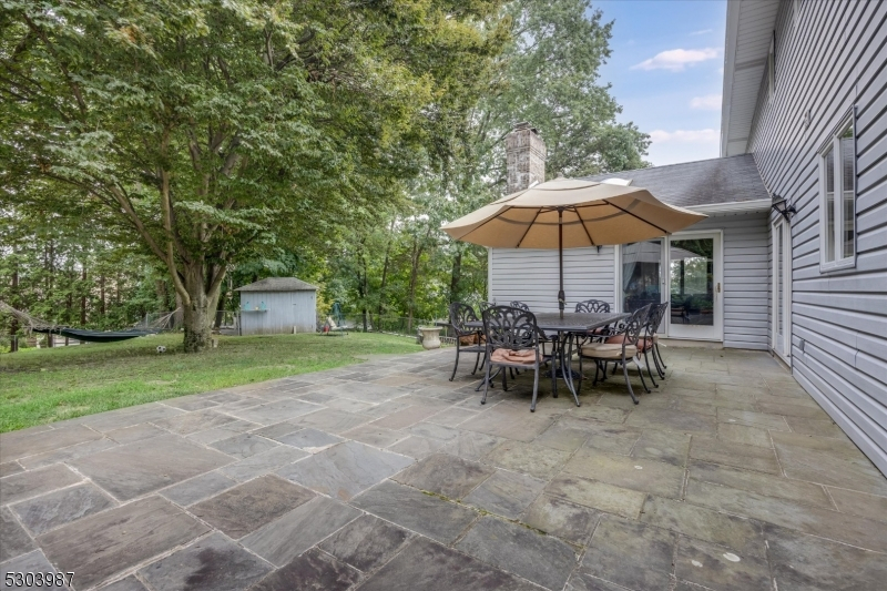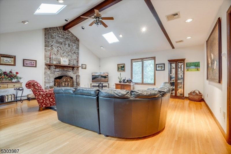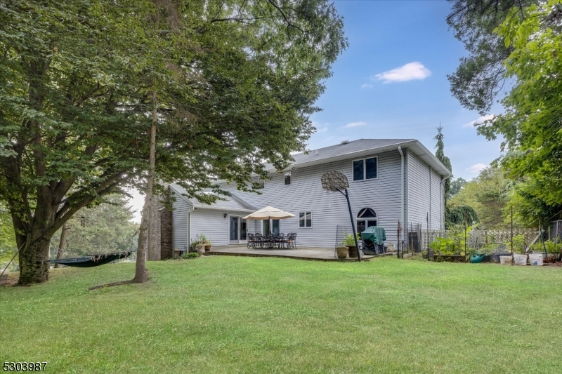 Charming Center Hall Brick Front Colonial on an oversized lot. This home boasts a bright Entry Foyer leading to a spacious living room with custom bar, a formal dining room, and an eat-in kitchen with a center island and custom countertops and slider to blue stone patio. The expansive family room features a brick fireplace, vaulted ceilings, and sliders to a patio. The first floor also includes an office/possible 5th bedroom, laundry room, and a full bathroom. The second floor offers a large Master Bedroom with a walk-in closet and a full Master Bathroom with a soaking tub, plus three additional bedrooms and a full bathroom with a double vanity. The full finished walk-out basement includes a rec room and another full bathroom. Additional features include a newer roof, central vacuum, 7-zone heating, multi-zone central air, hardwood floors, recessed lighting, a 2-car attached garage, and a large private yard with a slate patio, ideal for outdoor entertaining. Conveniently located near Rt 208, public transportation, parks, and schools.