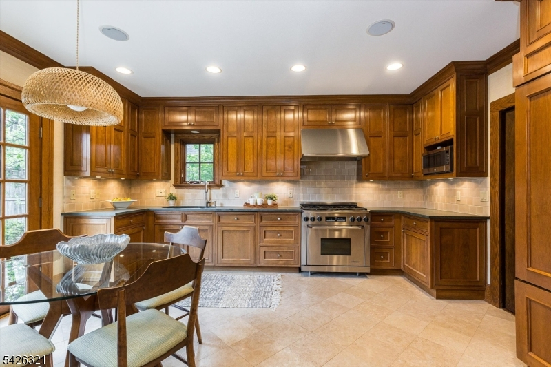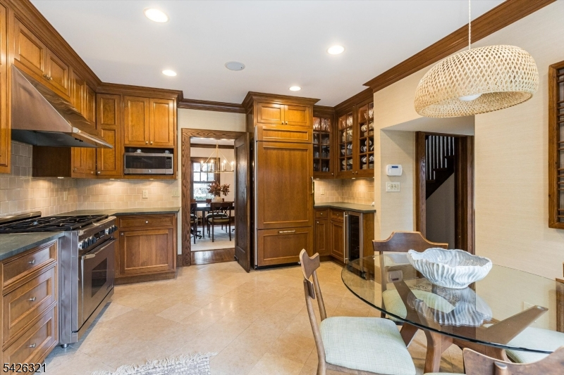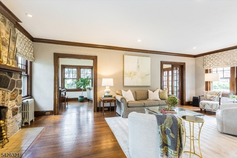 Refined, polished, and perfectly poised, this home is a true jewel in the desirable north end of Glen Ridge. It is a beautifully curated environment where inspired craftsmanship and period details meet a very genuine sense of home. The main level is defined by a particular kind of grace, featuring a living room with a wood-burning stone fireplace, rich chestnut accents, and gleaming hardwood floors that continue into a formal dining room made for warm evenings and easy hosting. A sunroom off the living room extends the living space and opens onto the patio just like the kitchen, which features high-end appliances and cabinetry. This dual access creates a seamless connection to the lush, private backyard, a secluded sanctuary surrounded by mature, privacy-inducing plantings. Upstairs, the second floor serves as a sanctuary of its own, with three spacious bedrooms including a stunning primary suite and dressing room. The third floor offers two additional bedrooms and a truly delightful surprise: a sprawling family room with a soaring cathedral ceiling that provides an unexpected sense of light and air. With a finished basement recreation room and ample storage throughout, this home offers the rare balance of generous proportions and a warm, inviting atmosphere. Perfectly located near the Glen Ridge Country Club, the highly-rated Forest Avenue School, and the Jitney to the train station, this is a permanent piece of Glen Ridge charm designed for a lifetime of memories.