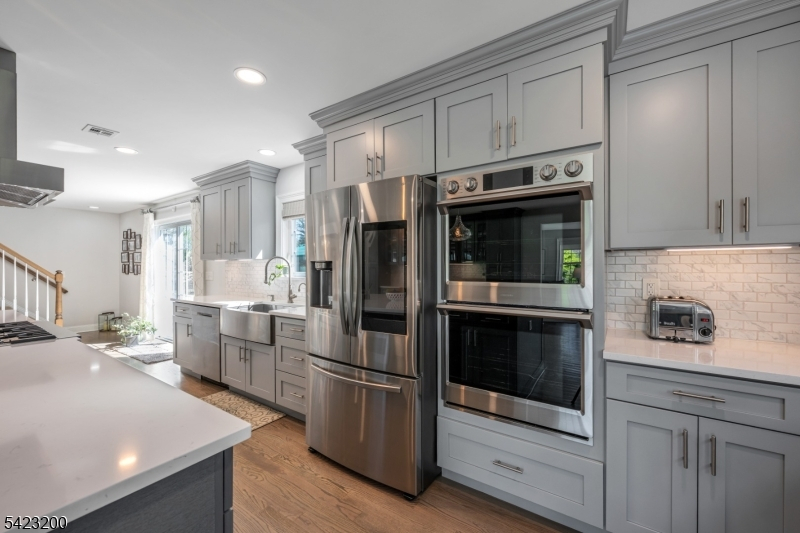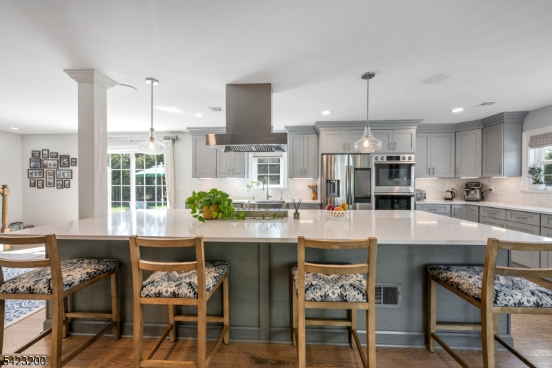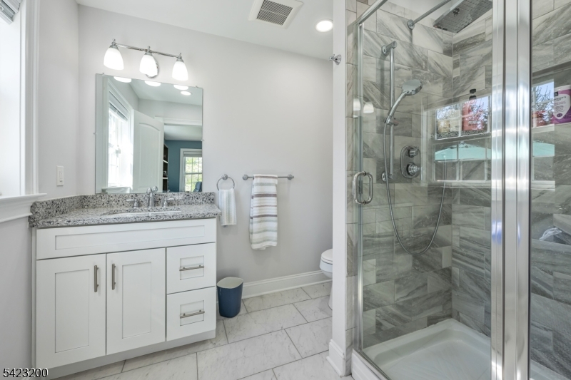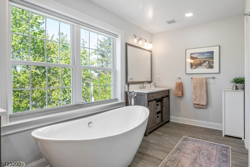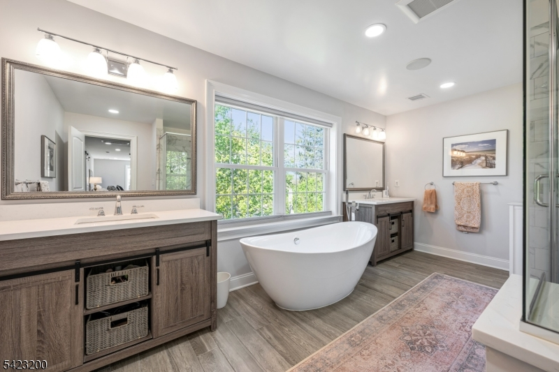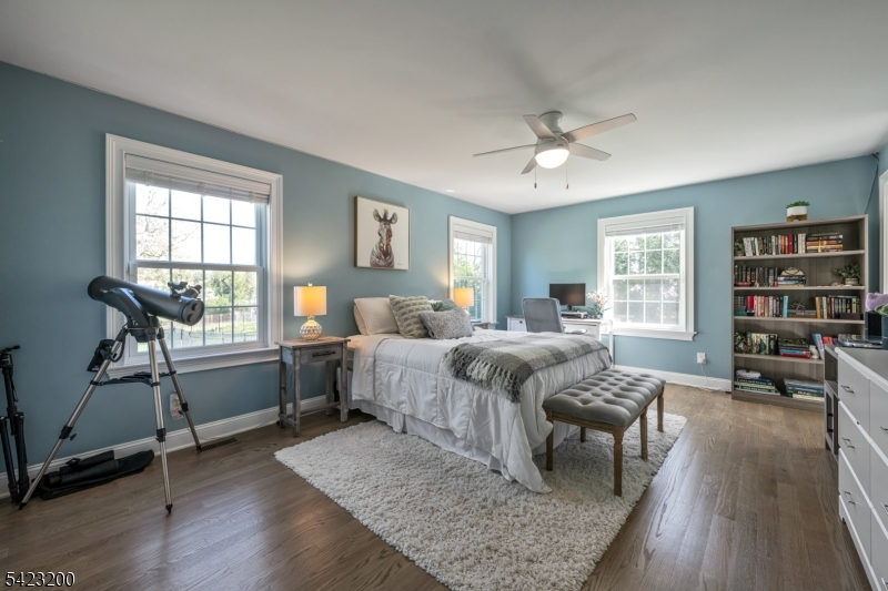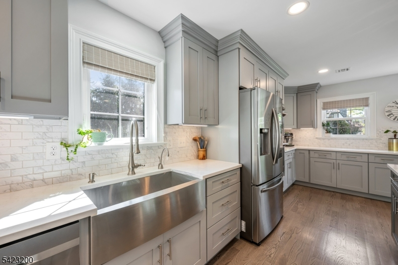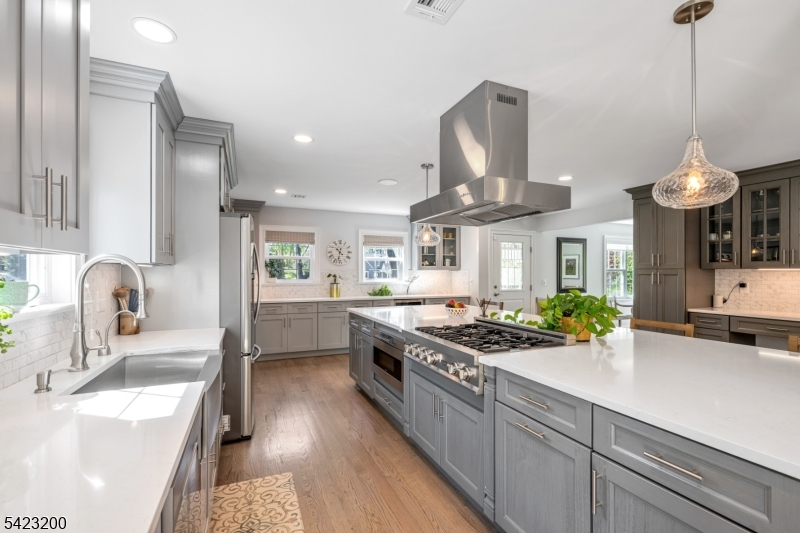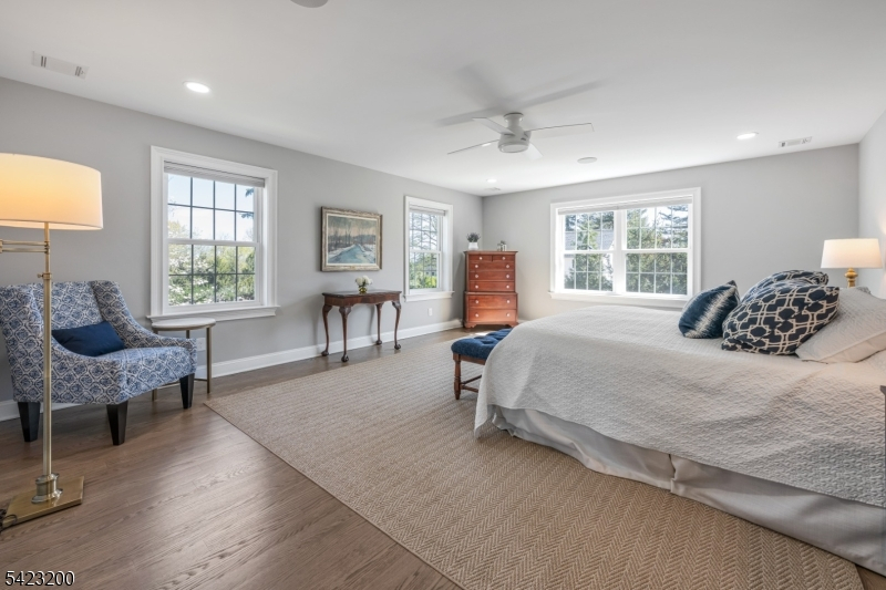 Beautifully fully renovated home set on a manicured, level lot with exceptional indoor-outdoor living, moments from downtown Basking Ridge and Oak St School. This home offers both comfort and convenience in a sought after neighborhood. The open-concept main level features a stunning kitchen with oversized center island, high-end appliances, quartz counter tops, custom cabinetry and seamless flow into the dining area with sliding doors to an exceptional patio-perfect for everyday living and entertaining. A sun-filled living room with expansive windows fills the space with natural light, creating a warm and inviting setting. The main level also offers three bedrooms, including an en-suite, plus an additional full bath. Upstairs, a beautiful primary suite features two walk-in closets and a stunning bath with soaking tub and separate shower. A spectacular office space completes the upper level-ideal for todays lifestyle. The finished lower level is exceptionally spacious, offering incredible flexibility for recreation, media, or work-from-home needs, along with a half bath and abundant storage. Additional highlights include built-in speakers in the office, primary bedroom, kitchen, living room, basement, and patio area. Step outside to a professionally landscaped yard with a patio and expansive lawn-perfect for gatherings or quiet enjoyment. Move-in ready and thoughtful updates throughout-this home truly has so much to offer.
