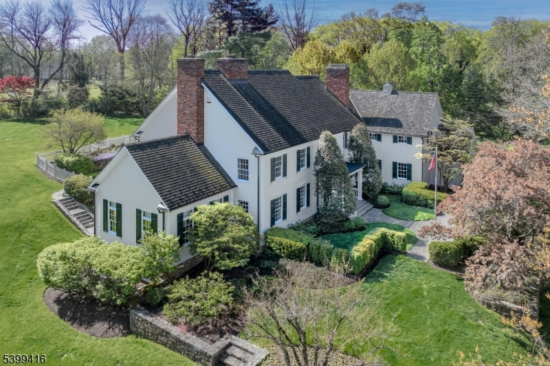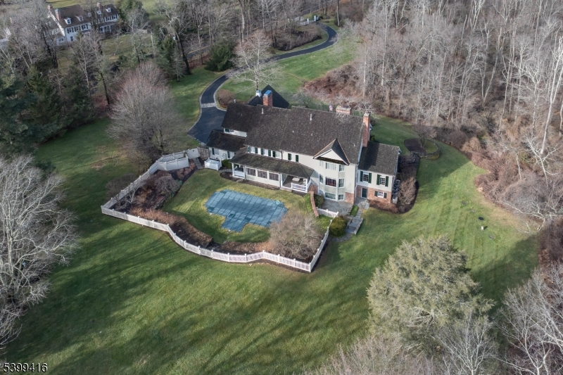 Presenting a distinguished 6-bedroom residence in the classic Harding tradition, set on 4.3 landscaped acres. Designed and built in 1997 by John McFayden and Terry Eichler, the home reflects enduring craftsmanship with soaring ceilings, refined millwork, and a thoughtfully designed floor plan for flexibility and function. Approximately 8,000 square feet unfold across three finished levels. The renovated kitchen is expansive and light-filled, anchored by an inviting informal dining area overlooking the gardens and private rear grounds. Fireplaces lend warmth and character to the gracious living room, formal dining room, private study, and first-floor family room. The second level includes the primary suite with fireplace, with a beautifully appointed bath and two custom walk-in closets of exceptional quality. 4 additional large bedrooms and 3 full baths offer ample flexibility. The 1200 sq ft walk-out lower level is as thoughtfully finished as the main floors, featuring a guest suite, secondary family room, game room, exercise space, wine cellar, powder room, and direct access to the Gunite pool with spa. With the advantage of Harding Township's notably low taxes, fine public and nearby private schools, the neighboring entertainment value of Morristown, 31-mile proximity to the Lincoln Tunnel, and under 30 minutes to Newark Liberty International Airport, this offering represents a compelling opportunity.
